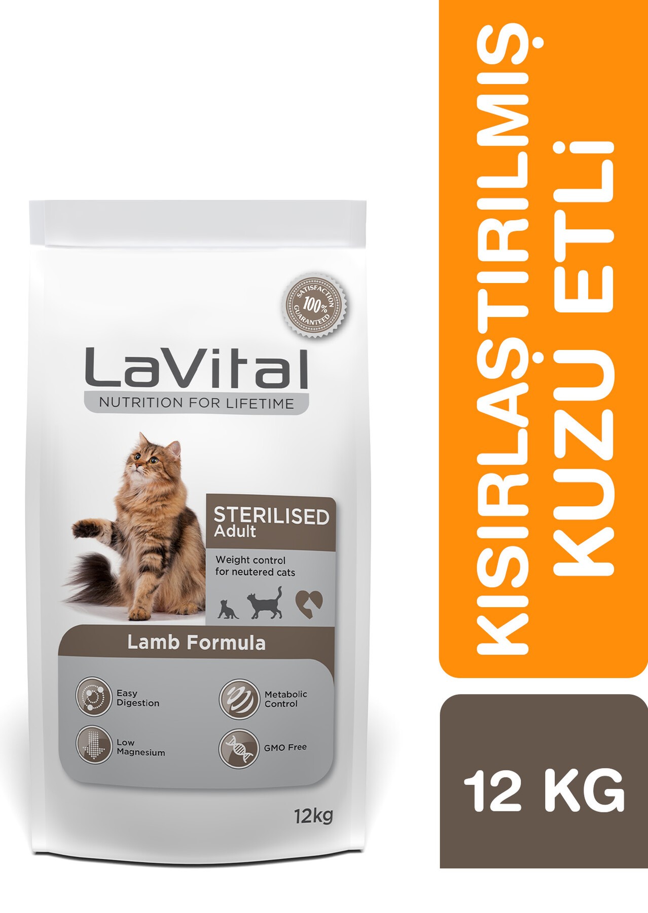 LaVital Kuzu Etli Kısırlaştırılmış Yetişkin Kedi Maması 12 kg, kısırlaştırma sonrası metabolizması yavaşlayan ve kilo almaya yatkın hale gelen yetişkin kediler için özel olarak geliştirilmiş premium kuru kedi mamasıdır. Dengeli protein ve kontrollü yağ oranı sayesinde ideal vücut ağırlığının korunmasına yardımcı olurken, kuzu eti içeriği ile yüksek lezzet sunar.
