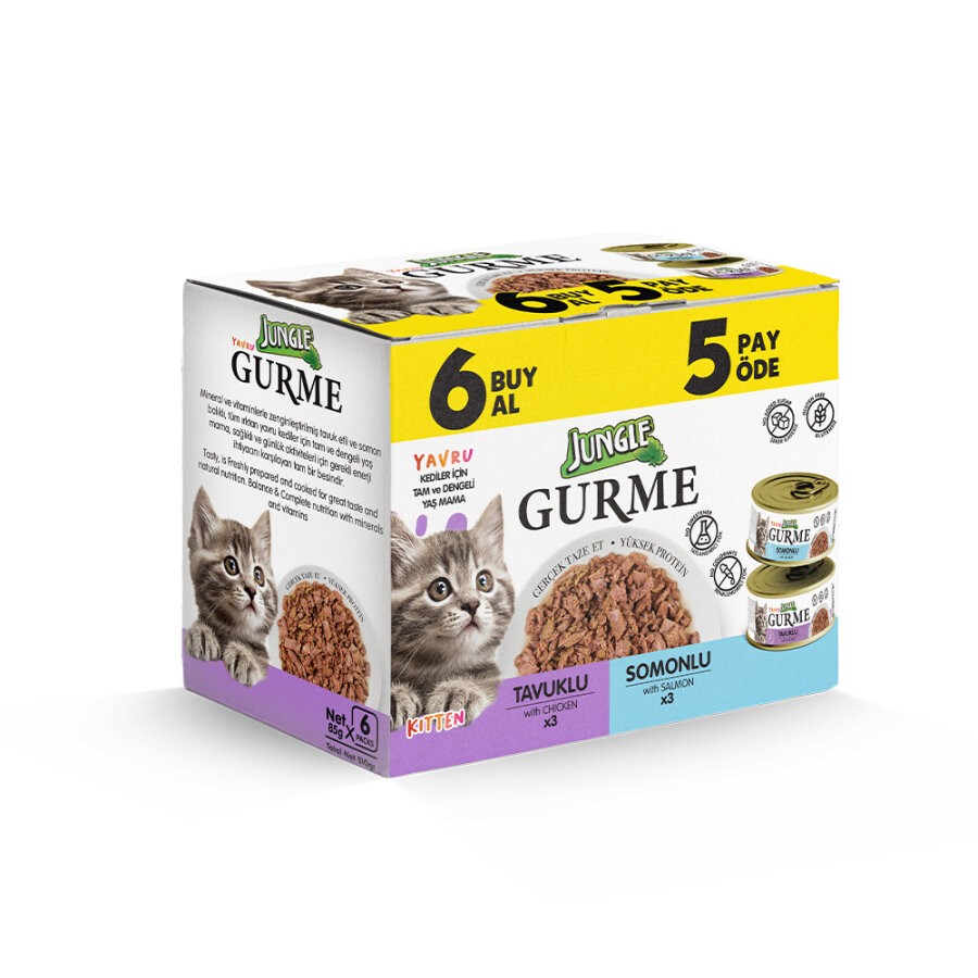Yavru kedinizin büyüme dönemindeki yüksek enerji ihtiyacını karşılamak ve damak tadını geliştirmek için tasarlanan Jungle Gurme 6'lı Karma Paket, en sevilen iki temel proteini bir araya getiriyor. Tavuk ve somonun besleyici gücü, minik dostunuzun sağlıklı bir başlangıç yapmasını sağlar.